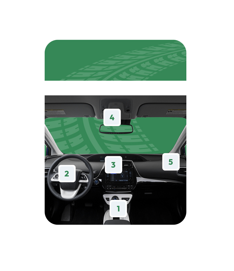 Seats, dashboard, electronics, and controls are tested for function, damage, and general interior wear.